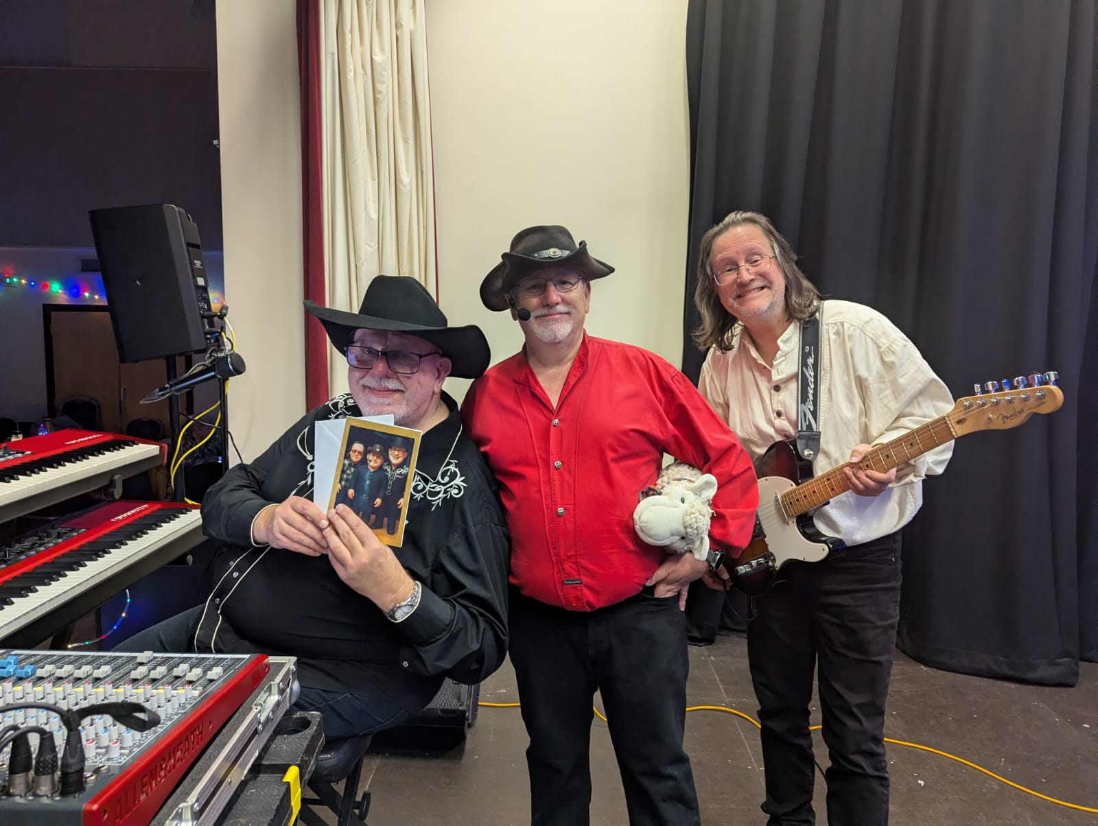 January social with The Westcoasters, Friday, 9th January 2026A new year of Dixie Belles line dances was kicked off by The Westcoasters, who are playing their final dates on this scene before collectively riding off into the sunset in April. Deejay and Dixie Belles driving force Jenny Bembridge brought the band on with warm comments reflecting upon how long she had personally known the lads, which drew noisy applause from the audience, many of whom had signed the farewell card that she handed over on stage. |